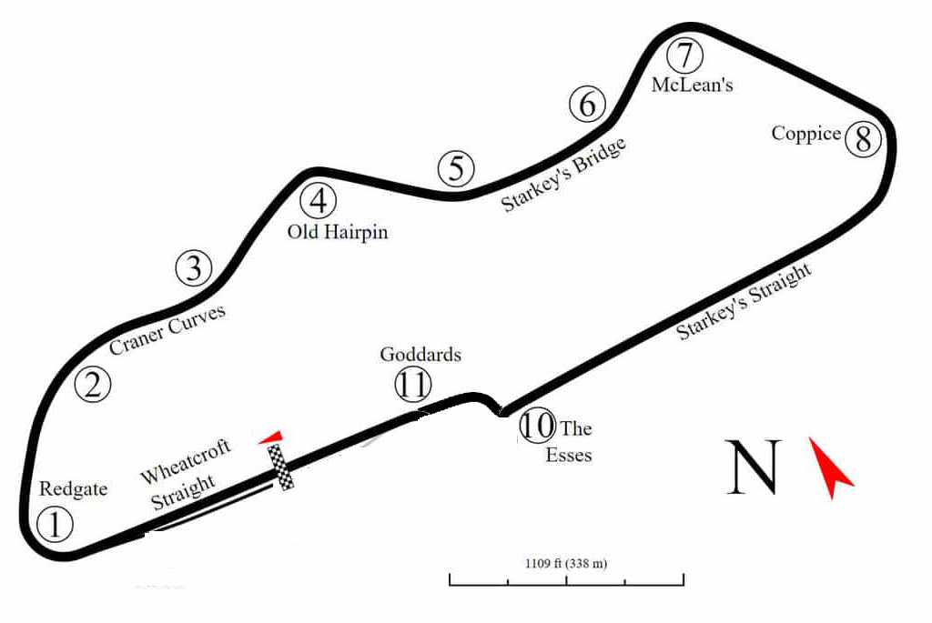 Informationen zur Rennstrecke - Der Donington Park Circuit wurde als permanente Rennstrecke in Donington (Land: England, Bundesstaat: England) erbaut. - Die Rennsport-Anlage wurde im Jahre 1931 eröffnet und befindet sich seither im Besitz des Streckenbetreibers Kevin Wheatcrofts Firma Wheatcroft & Son Ltd.. - Meteorologischen Aufzeichnungen zufolge fällt an 170 Tagen jährlich (also 47 % des Jahres) Regen in Donington. - Die Strecke bringt durch ihren normal rau Asphalt-Belag einen normal hoch Reifenverschleiß mit sich.