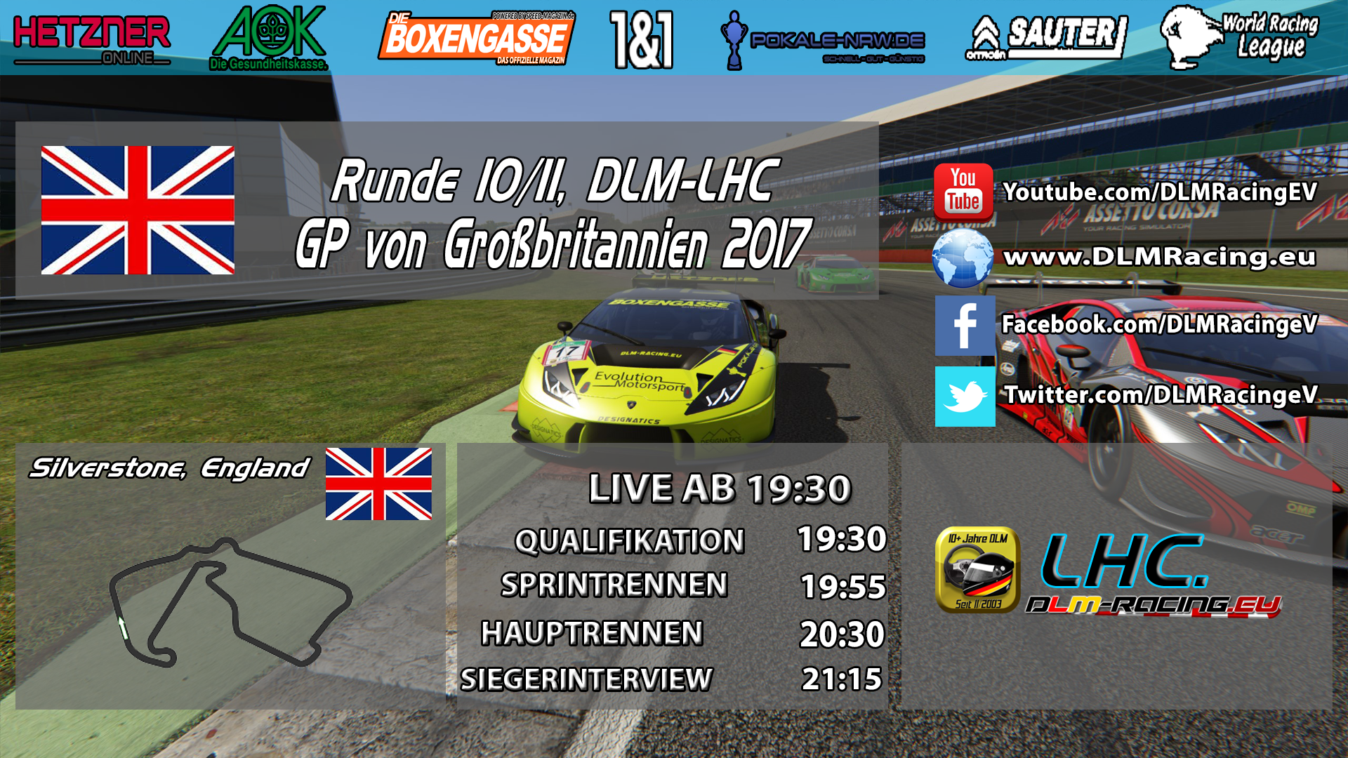 | #19] Mittwoch, 06. Dezember 2017 TWC-DLM Saison 2017HW 18. Ungarn - Budapest Sprintrennen [Q, SR, HR, Interw.] 02:56:39 Stunden |  | #18] Mittwoch, 22. November 2017 TWC-DLM Saison 2017HW 16. Großbritannien - Brands Hatch Sprintrennen 02:27:30 Stunden |  | #17] Mittwoch, 08. November 2017 TWC-DLM Saison 2017HW 14. Rheinland-Pfalz - Nürburg Sprintrennen [Q, SR, HR, Interw.] 02:31:24 Stunden |  | #16] Mittwoch, 25. Oktober 2017 TWC-DLM Saison 2017HW 12. Belgien - Zolder Sprintrennen [Q, SR, HR, Interw.] 02:21:36 Stunden |  | #15] Mittwoch, 11. Oktober 2017 TWC-DLM Saison 2017HW 09. Österreich - Spielberg Sprintrennen [Q, SR, HR, Interw.] 02:37:59 Stunden |  | #14] Mittwoch, 27. September 2017 TWC-DLM Saison 2017HW 07. Italien - Monza Sprintrennen [Q, SR, HR, Interw.] 02:36:41 Stunden |  | #13] Mittwoch, 13. September 2017 TWC-DLM Saison 2017HW 05. Brandenburg - Klettwitz Sprintrennen [Q, SR, HR, Interw.] 02:22:56 Stunden |  | #12] Mittwoch, 30. August 2017 TWC-DLM Saison 2017HW 04. Sachsen-Anhalt - Oschersleben Sprintrennen [Q, SR, HR, Interw.] 02:26:07 Stunden |  | #11] Mittwoch, 16. August 2017 TWC-DLM Saison 2017HW 01. Baden-Württemberg - Hockenheim Sprintrennen [Q, SR, HR, Interw.] 02:29:43 Stunden |  | #10] Samstag, 22. Juli 2017 DLM-Events 2017 - SRB Indy500 SRB Indy500 Rennen [Quali, Rennen, Interview] 04:16:39 Stunden |  | #9] Mittwoch, 07. Juni 2017 DLM-LHC Saison 2017FS 16. Steiermark - Spielberg Hauptrennen [Q, SR, HR, Interw.] 02:45:01 Stunden |  | #8] Mittwoch, 24. Mai 2017 DLM-LHC Saison 2017FS 15. San Marino - Imola Hauptrennen [HR & Siegerinterview] 01:24:11 Stunden |  | #7] Mittwoch, 24. Mai 2017 DLM-LHC Saison 2017FS 14. San Marino - Imola Sprintrennen [Q & SR] 00:59:06 Stunden |  | #6] Mittwoch, 10. Mai 2017 DLM-LHC Saison 2017FS 12. Tschechien - Brno Hauptrennen [Q, SR, HR, Interw.] 02:19:46 Stunden |  | #5] Mittwoch, 10. Mai 2017 DLM-LHC Saison 2017FS 13. Tschechien - Brno Hauptrennen 02:19:46 Stunden |  | #4] Mittwoch, 26. April 2017 DLM-LHC Saison 2017FS 11. Großbritannien - Silverstone Siegerinterview 00:15:58 Stunden |  | #3] Mittwoch, 26. April 2017 DLM-LHC Saison 2017FS 11. Großbritannien - Silverstone Hauptrennen 01:00:05 Stunden |  | #2] Mittwoch, 26. April 2017 DLM-LHC Saison 2017FS 10. Großbritannien - Silverstone Sprintrennen 00:28:45 Stunden |  | #1] Mittwoch, 26. April 2017 DLM-LHC Saison 2017FS 10. Großbritannien - Silverstone Qualifikation 00:32:45 Stunden |
