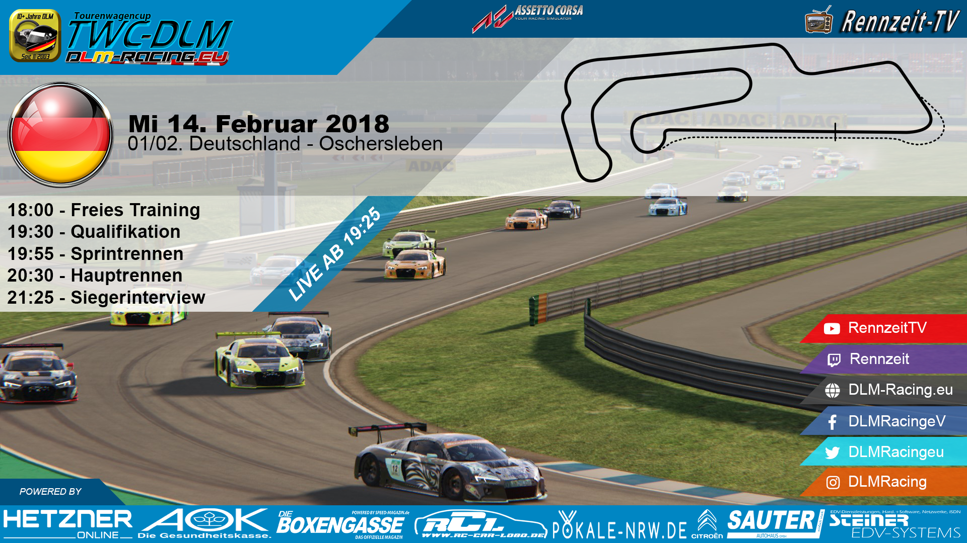 (c) 2003-2026: Deutsche Liga Meisterschaft - DLM Racing e.V. • Lütke-Brookweg 1 • D-26892 Kluse (Niedersachsen) • VR200415 Amtsgericht Osnabrück