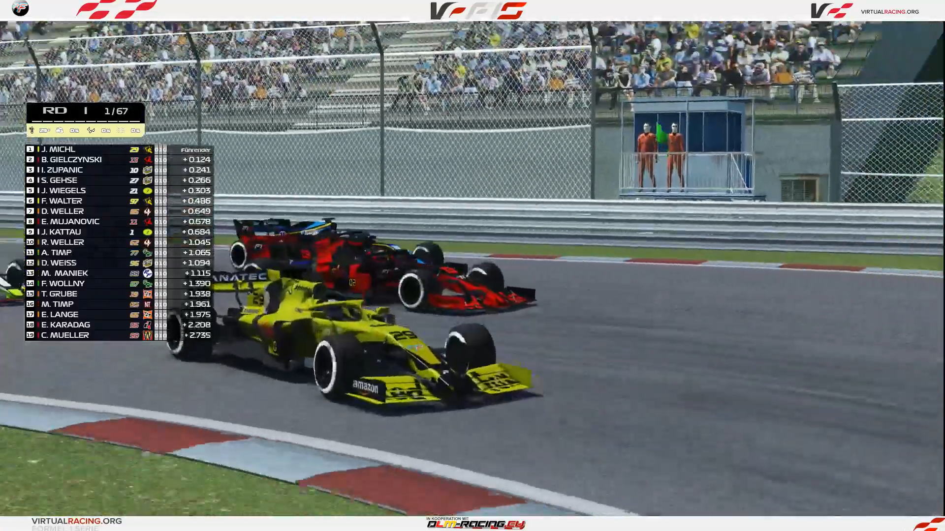 Das Rennergebnis: Zahlen, Daten, Fakten sowie Gewinner und Verlierer Sieg von Benjamin Gielczynski beim Formel-DLM Pazifik GP 22.11.2020 | Formel-DLM | Rennergebnis | Vom System erstellt Benjamin Gielczynski hat am 22.11.2020 den Großen Preis von Pazifik in Oyama (Tochigi) auf dem Fuji Intern. Speedway gewonnen. Der 37 jährige Red Fox Fahrer #13 aus Bayern errang den Sieg von Startplatz 5 aus mit einer 2 Stopp-Strategie. Mit einer Durchschnittsgeschwindigkeit von 212,996 Kmh setzte er sich in einem spannenden Schlußspurt nach 1 Stunde, 26 Minuten und 11,936 Sekunden Renndauer mit einem knappen Vorsprung von 4.268 Sekunden durch. Jan Kattau (Light Simracing #01) aus Nordrhein-Westfalen und Emrah Mujanovic (Red Fox #11) aus Wiltz (Luxemburg) vervollständigten das Podium nachdem sie auf den Plätzen 10 und 1 in das 67 Runden umfassende und 306,994 Km lange Rennen gingen.